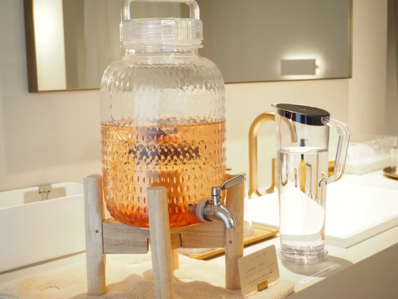 サウナに入る前には、コップ一杯の水分補給を忘れずに。